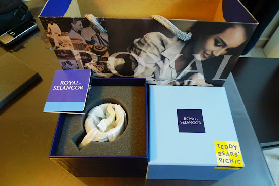 Finally I made up my mind on Royal Selangor Pewter!Since she likes something cute, I get her a pewter mug - Teddy Bears' Picnic which is RM170.00. :p In addition, there is 10% discounts for Intel Employees! wow~